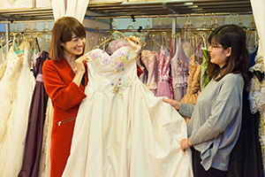 メイクが終わったら、フィティングルームでドレスに着替えます。