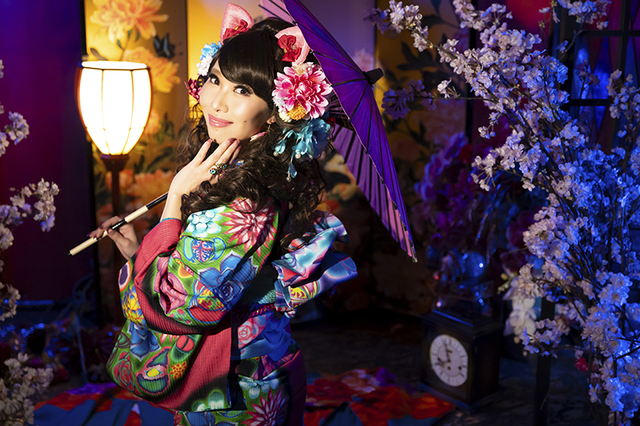 お持ち込みの個性的でセンスあふれるお着物とヘアーアクセサリー。