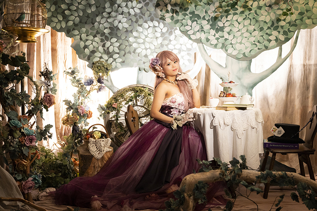今回は、ピンクのウィッグに紫のお花のドレスをセレクト。